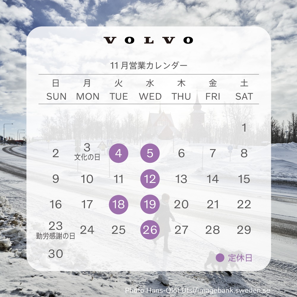 11月の営業カレンダーをご案内させていただきます。