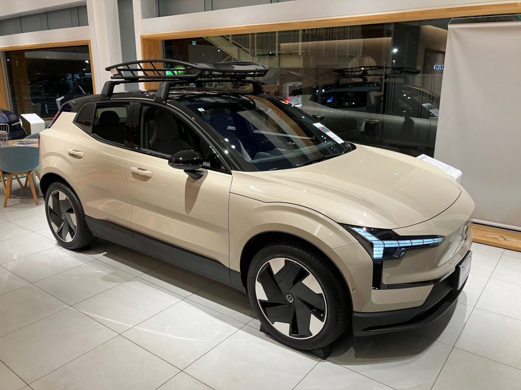 今週は試乗車のEX30をショールームに展示してみました。