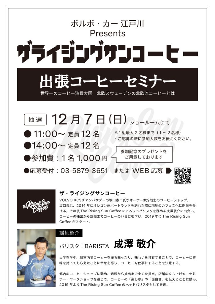 ボルボ・カー江戸川ショールームにてコーヒーセミナーを開催いたします。